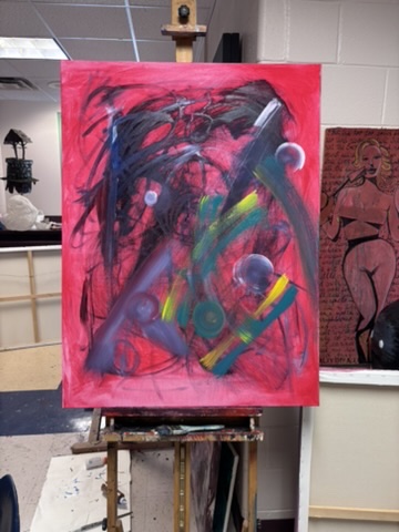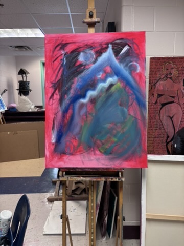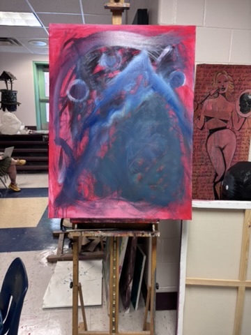 Going through the process of painting and looking, and then painting again, I learned more about what the painting feels like it needs. Using my experience as an artist, I had to go with my gut feelings about composition. Getting more opinions on the piece was also very helpful during the process when I wasn't sure what to add or how to improve the piece. I planned to create more contrast and texture to add to the composition.
